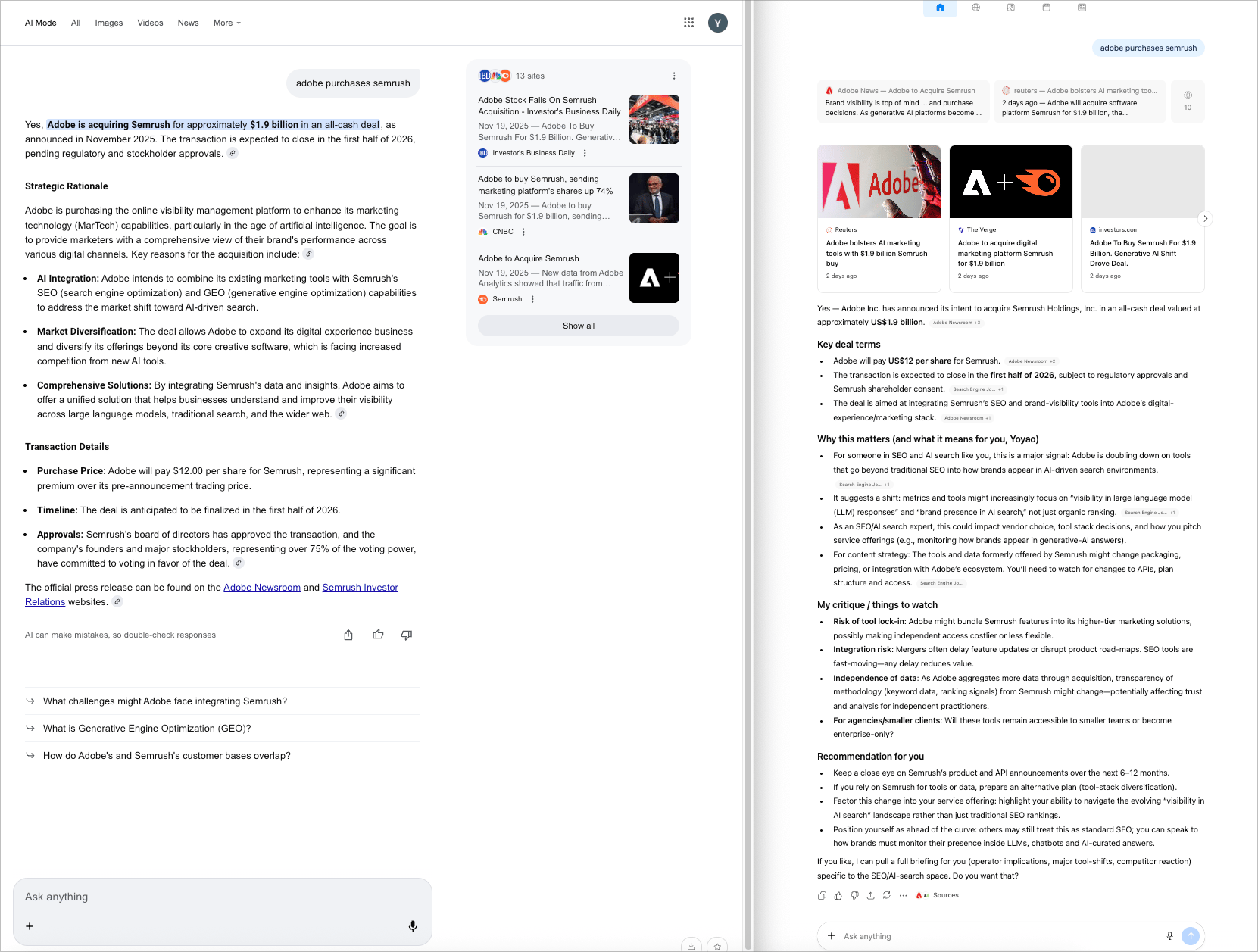 My Take: Wow…just Wow. With Adobe’s marketing and analytics products, including its Brand Concierge and LLM Optimizer, the acquisition makes sense. And if you’re into the whole SEO vs GEO debate…