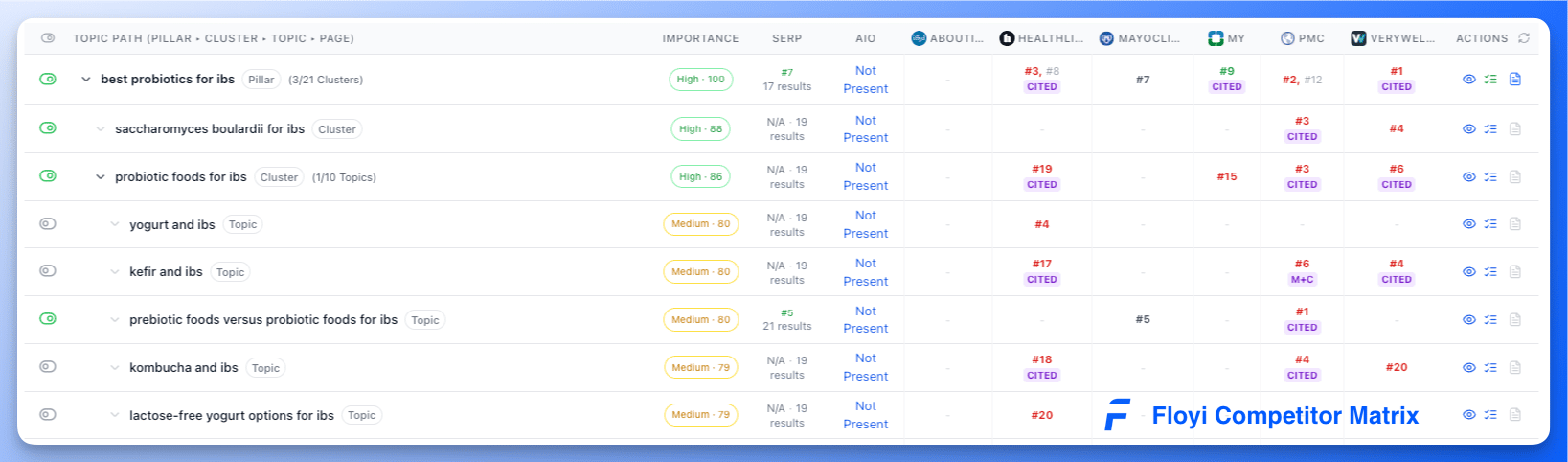 So I built the new Competitor Matrix inside Floyi’s Topical Authority Planner.
