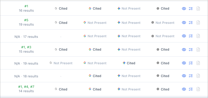 My Take: I also added Gemini as a core engine to track in Floyi’s Authority Scorecard (alongside ChatGPT, AI Overviews, AI Mode), because it powers AI Overviews and AI Mode. Even though it’s 3/4 Google, they still provide different answers and sources. Here’s a small sample tracking SERPs and the 4 AI engines for a cluster in Floyi: